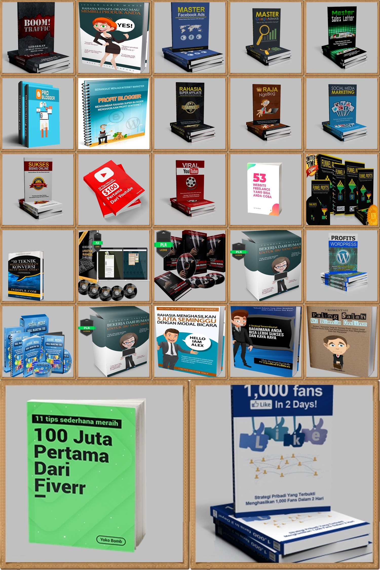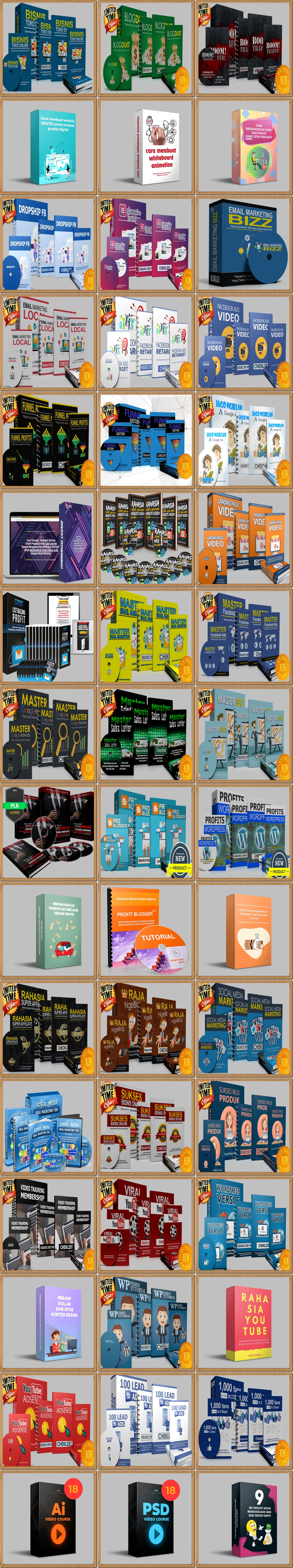 Saat ini ada lebih dari 25 Ribu Ebook dan Video Panduan Yang bisa kamu pelajari untuk internet marketing dan bisnis online. Dalam kategori ini kamu akan mempelajari berbagai panduan Blogging, Monetisasi Youtube, Youtube Marketing, Desain Grafis dan Video Editing, Sosial Media Marketing, Blogging, dan lain-lain. - Template Grafis dan Video.