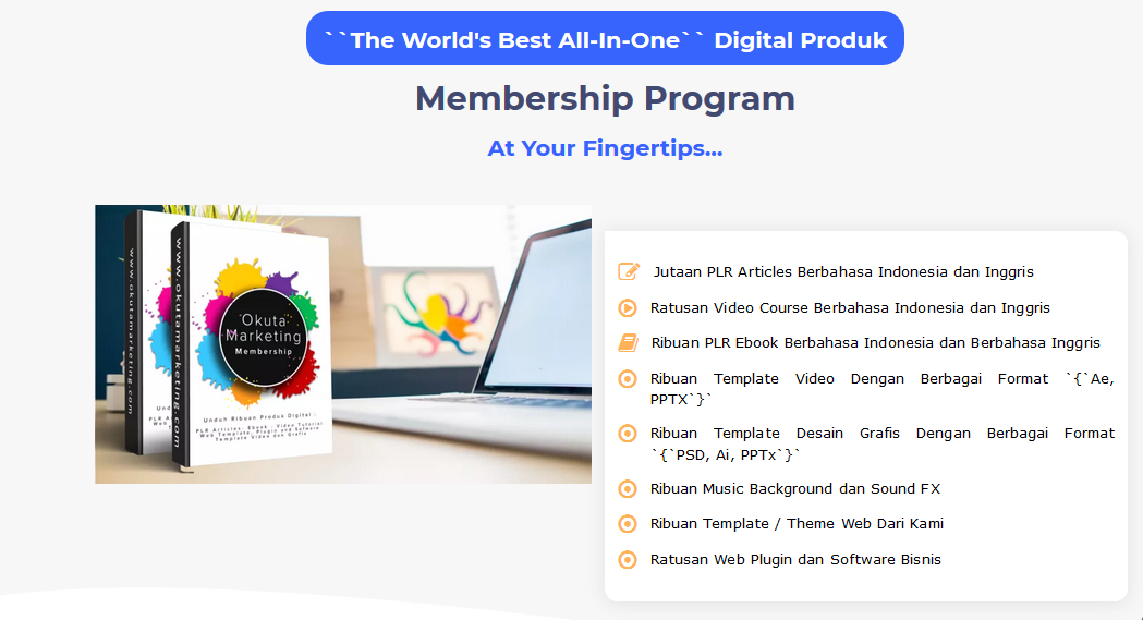 Cukup sekali beli produk membership Kami untuk semua keperluan aktivitas bisnis online baik untuk saat ini maupun di masa yang akan datang. Semua sudah kami siapkan.